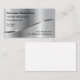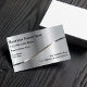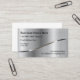 Metal construction and welding services business cards designed with silver metallic artwork digitally printed on the background in a simple layout you can customize online.