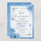 Silver Bahama Blue Roses Elegant Quinceanera Invitation