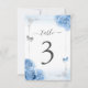 With this simple DIY template, it's easy to create your own elegant table numbers for a Bahama blue and silver party theme. The original fairytale art by Raphaela Wilson depicts soft watercolor roses in shades of medium to light blue with faux metallic silver accents, glitter butterfly confetti, and luxurious filigree borders. The unique silver princess tiara / queen crown adds additional glamor and sparkle to this once upon a time themed design on the backside. These pretty floral butterfly template table cards can be personalized further by changing the modern script calligraphy fonts to a typography style that best suits your fancy. Plus, these editable template table number cards can beautify your reception decor not only for elegant rose weddings, but also for a quinceañera / quince, Cinderella princess sweet 16 birthday party, fairy tale bridal shower, royal baby shower for a girl and other special celebrations. Include silver or acrylic table card holders to make these lovely small signs sparkle, and keep it simple for your guest seating arrangements - enjoy! Category: elegant wedding table cards with flowers / butterflies; printable Bahama blue quinceanera table number party stationery; and table numbers wedding invitations. Babhama blue party theme colors: midtone marine aqua blue, light blue, dark gray, light gray, silver and white.