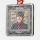 A silver frame highlighted by a background with a subtle damask pattern is the centerpiece of this elegant keepsake photo ornament. Upload your own photo and customize the year and name. This elegant design makes a great gift for any occasion!