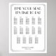 Black and white Great Gatsby wedding seating chart with silver frame and customizable text - you can add bride's and groom's name, wedding date and guest's names (14 tables for 10 guest at each table).