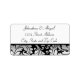 Elegant chic vintage flourish swirl damask pattern in a silvery grey on black background. Customize your personal contact information or leave black. Trendy labels for wedding invitations, bridal shower invites or birthday party invitations.