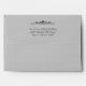 Elegant silver and black invitation envelopes. Brushed silver with black inside flap. Silver gray elegant design with black flourish and return address on back.