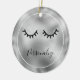 Lightweight, smooth, pure white ornament with nice sheen. Perfect size to be seen from across the room ... and to attract closer inspection! Price was great for ordering enough for the whole family! Clear, bold black design just as requested. Matches the order exactly. Just so nice!