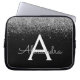 Silver Black Glitter Glam Chic Monogram Laptop Sleeve