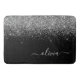 Silver Black Glitter Script Monogram Girly Name Bath Mat