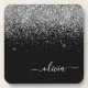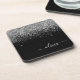 Silver Black Glitter Script Monogram Girly Name Beverage Coaster