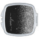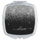 Silver Black Glitter Script Monogram Girly Name Compact Mirror