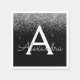 Silver Black Glitter & Sparkle Monogram Birthday Napkins