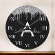Silver Black Luxury Glitter Glam Monogram Name Round Clock