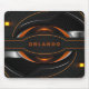 The gaming background for the desk mat features a striking combination of silver, black, and orange geometric lines. The lines are arranged in a captivating pattern that adds a touch of sophistication and elegance to your gaming setup.