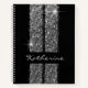 Dark gunmetal silver and black faux glitter racing stripe design on a personalized notebook with name, perfect gift for the car and auto racing enthusiast, mechanic, or new driver. Use the template editor to change the background color. Can be used as a journal, appointment book, mileage log, for car notes or todo lists.
