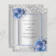 Faux silver looking background decorated with blue roses, flowers and confetti. Personalize and add your names and wedding details. Black letters.