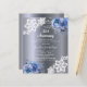 For an elegant and romantic 25th wedding anniversary, silverwedding. A dark faux silver looking background decorated with blue florals, roses, white lace. Personalize and add your names and details.