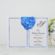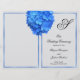 Blue floral folded program cover for a wedding ceremony. Pretty, big blue hydrangea flower on the front with black text that includes a big monogram initial at the top. Matching blue frames enclose the text and what will be the back of the program. The 8.5 x 11 inch paper has optional upgrades and is printed on one side only, to fold after purchase.