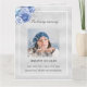 An elegant 4-page program. A faux silver background, a faux silver frames, light blue flowers, florals, space for your photo on the front. Personalize and add name, dates and your text.