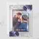 Faux silver looking background, decorated with navy blue and light blue florals, flowers and faux silver glitter, sparkles. Personalize and add your photo, names and wedding details.