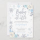 Silver & Blue Floral Winter Baby Shower Snowflake Invitation