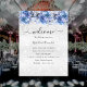 A modern, elegant wedding program, timeline. Faux silver looking background decorated with faux sparkles and blue flowers. Personalize and add your names and wedding details. Black colored letters. If you have more text it's possible to reduce the line space.