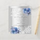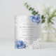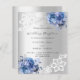 For an elegant and romantic wedding. A faux silver looking background decorated with blue florals, roses and white lace. Personalize and add your names and details.