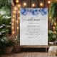 A modern, elegant wedding program, timeline. Faux silver looking background decorated with faux sparkles and blue flowers. Personalize and add your names and wedding details. Black colored letters. If you have more text it's possible to reduce the line space.