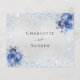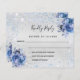 A faux silver metallic looking background, decorated with sparkling light blue faux glitter sparkles and blue florals, flowers. Personalize and add the reply by date and your names.