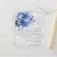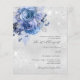 Faux silver looking background decorated with blue florals and faux glitter sparkles. Personalize and add your names and wedding details. Black colored letters.
