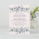 Elegant watercolor botanical wedding invitation frames your wedding details with a ribbon of sheer pastel watercolor foliage in pale, silver and gray on a elegant PALE PINK background.