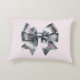This charming accent pillow is ready to be personalized for baby's room or other with name. It features a metallic silver bow with faux glitter set against a soft pink background, all beautifully accented with tiny pink stars. A fancy pillow will add charm and style to any setting.