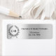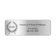 A faux silver looking background. Decorated with a laurel wreath. Personalize and add your names, first names initials and return address.