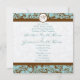 Silver Brown Damask Aqua Blue Wedding Invitation