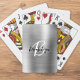 Silver Brushed Metal Black White Script Monogram Poker Cards
