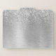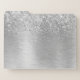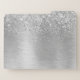 Easily personalize this trendy file folder design featuring pretty silver sparkling glitter on a silver brushed metallic background.
