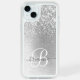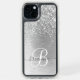 Silver Brushed Metal Glitter Monogram Name iPhone 15 Plus Case