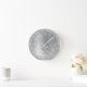 Easily personalize this trendy chic wall clock design featuring pretty silver sparkling glitter on a silver brushed metallic background.