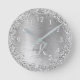 Silver Brushed Metal Glitter Monogram Name Round Clock