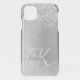 Silver Brushed Metal Glitter Monogram Name Uncommon iPhone Case