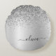 Silver Brushed Metal Monogram Name Girly Round Pillow