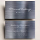 This elegant modern business card features a background image of silver faux brushed metal foil. The word "Microblading" appears on the front of the card in white handwriting script. Personalize it with your name in white sans serif font and your contact information on the back.