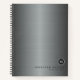 Professional notebook features custom monogram, name and text in grey classic block font style with on a silver gunmetal brushed metal background.