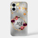 Silver burgundy flowers gold stars monogram Case-Mate iPhone case