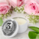 A set of mini candles for employees and clients, to celebrate the 3rd anniversary of your business. Commemorative design personalized with your company logo, with a faux silver metal background, a laurel branch, and stars. The logo can be changed to text by clicking the button to edit the design.