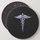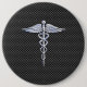 Silver Caduceus Medical Symbol Carbon Fiber Style Button