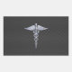 Silver Caduceus Medical Symbol Carbon Fiber Style Rectangular Sticker