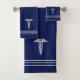Silver Caduceus & Stripes on Navy Blue Bath Towel Set