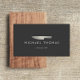 A silver chef's knife along with your name or business name creates an eye-catching and professional logo on this modern business card design. Perfect for catering companies, personal chefs, restaurants, kitchen supplies, etc. © 1201AM CREATIVE