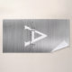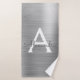 Silver Faux Brushed Metal Metallic Foil Elegant Monogrammed Bathroom Towel Set for an elegant modern glam and girly style.
