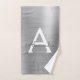Silver Faux Brushed Metal Metallic Foil Elegant Monogrammed Bathroom Towel Set for an elegant modern glam and girly style.