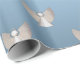 A colorful Christmas pattern of silver angel figures set against a pretty blue background.