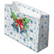 Silver Christmas Bells, Holly, and Blue Snowflakes Large Gift Bag